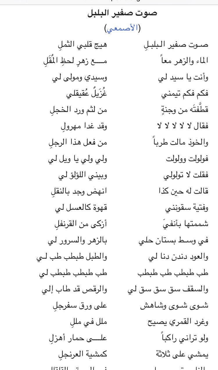 لمى فياض Lama Fayyad On Twitter صوت صفير البلبل قصيدة نظمها الأصمعي منوعة الكلمات وغريبة المعاني يتحدى بها الخليفة العباسي أبا جعفر المنصور بعد أن ضي ق على الشعراء فكان يحفظ