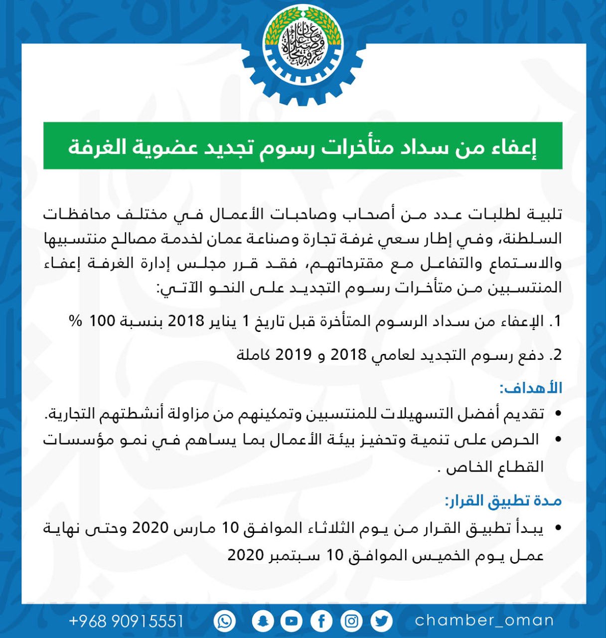 غرفة تجارة وصناعة ع مان On Twitter إعفاء من سداد متأخرات رسوم تجديد عضوية غرفة تجارة وصناعة ع مان